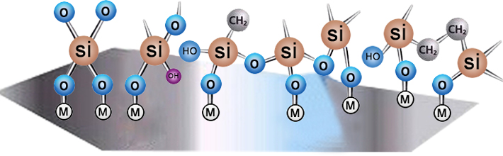 剩余的硅烷分子則通過-Si-OH基因之間的凝聚反應在金屬表面上形成具有Si-O-Si三維網狀結構的有機膜。